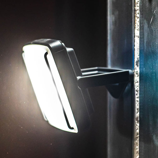 This rechargeable work light belongs to protection class IP67. That means it's got lens protection and a rubber shock absorber, it can withstand being dropped from a height of up to two metres, it's resistant to dust and water, and can even be submerged to one metre. In other words, it's a robust rechargeable LED work light that can handle any task, big or small!