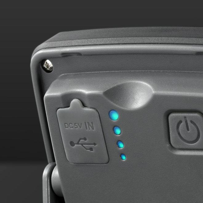 This LED work light has a powerful 3.7V 2600mAh 18650 lithium-ion rechargeable battery that lasts up to 4 hours and has a light intensity of up to 515 lumens. This rechargeable worklamp also has protection against overcharging and excessive battery discharge. Even after 500 charges, the capacity is still 80%!